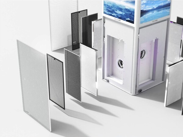 ‘에코버 타워형 공기청정기’는 대형 로비와 같은 개방형 공간에 맞춰 설계한 대용량 공기질 관리 솔루션이다. 360도 전방위 흡입 구조와 4-Way 입체 청정시스템을 통해 넓고 높은 공간에서도 공기 사각지대를 줄이고 빠른 공기 순환을 유도하며, 고성능 필터 기반의 대용량 포집 시스템으로 다중이용시설에 적합한 안정적인 공기질 관리를 지원한다.